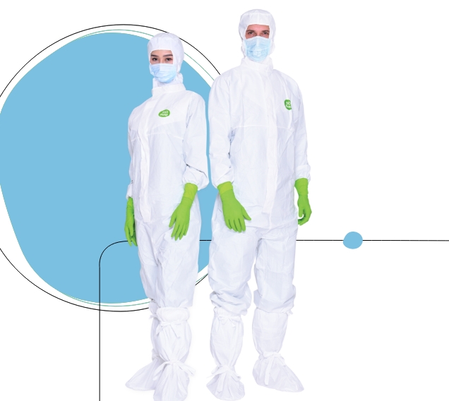 Sterile Cleanroom Coverall with Mandarin Collar, Hood with Integrated Facemask & Overboots
